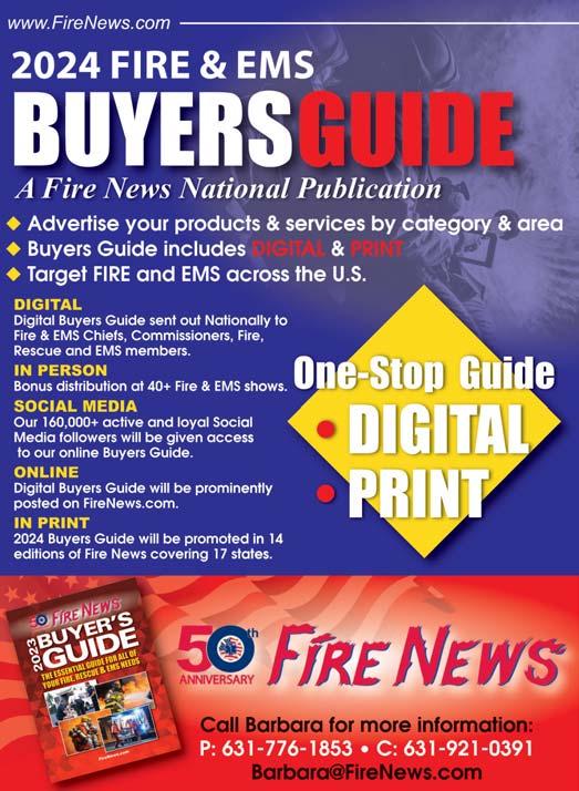 51 Years of Excellence As you know, Fire News is in its 51st yearof publication. If you have any stories, photos and good memories from the past, please send them to LI@FireNews.com. Letters to the Editor, byline articles, and columns represent the opinions of the writers and photographers and are not necessarily the views of the Fire News. We reserve the right to edit all of the above. We are not responsible for errors in advertisements beyond the cost of advertising space. Copy submitted is subject to editing for space requirements. The placing of an advertisement in this publication does not constitute endorsement. Contents are copyrighted. Editorial and advertising copy cannot be reproduced without written permission from the publisher. Fire News is published monthly by Fire News Inc, with corporate offices at 146 South Country Road, Bellport, NY11713. Serving Fire & EMS Heroes