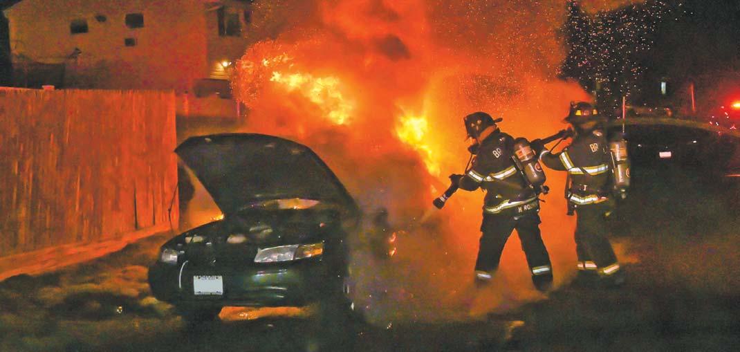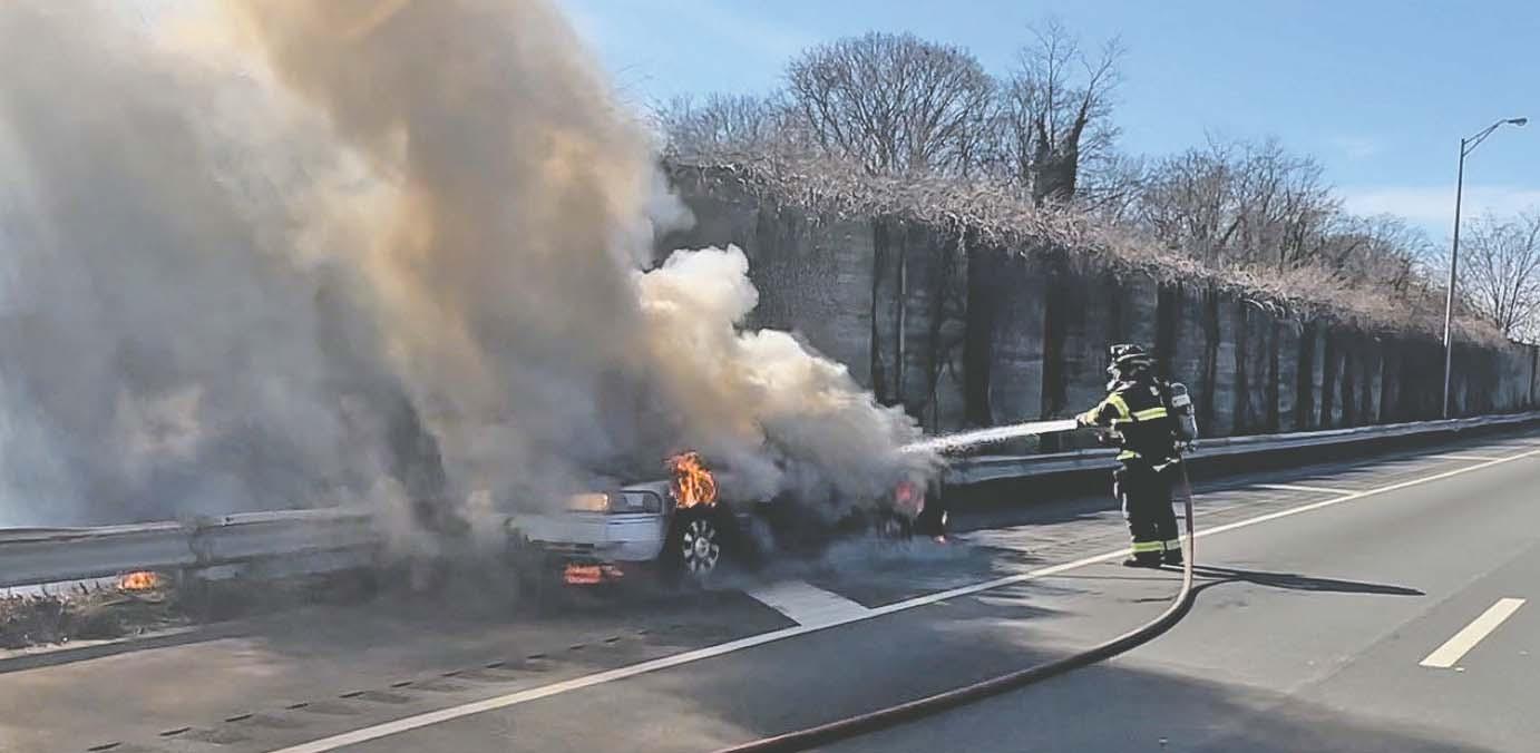 On February 15, 2024, the Wantagh Fire Department responded to a carfire on the Wantagh State Parkway, north of Sunrise Highway, at approximately 1645. First Assistant Chief Bill Stevens arrived moments later, followed by Second Assistant Chief Bill Van Leer, finding a fully involved carfire. Engine 8 firefighters led by ex-