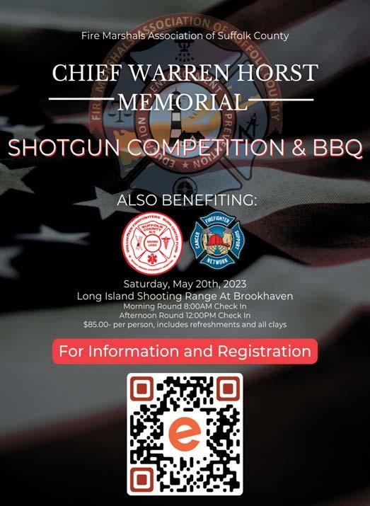 The Fire Marshals Association of Suffolk County, Inc held theirannual meeting, election and luncheon at the Sonoma Grill in Holtsville. Retired Suffolk County Police Detective Ted Lamonica was recognized for his 22 years of dedicated service to the residence of Suffolk County. Reese McGuire received a trophy forthe first-place youth division forthe shotgun competition. Aportion the proceeds from the shotgun competition was donated to the FirefighterCancer Support Network and to the Suffolk County Firefighters Burn Center.