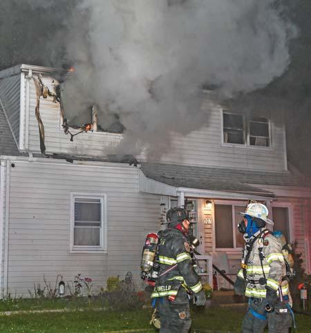 In ambient temperatures running around 100 degrees, the Levittown Fire Department, along with mutual aid companies, operated at a working fire on Comet Lane off Satellite Lane on the afternoon of June 25, 2025. Firefighters put two handlines into operation for a fire in the attic of a two-story Levitt-style residence. While performing searches, firefighters rescued two ferrets and a dog. All other searches were negative, and the main body of fire was quickly knocked down. One firefighter sustained a non-lifethreatening injury, and the cause of the fire was under investigation.