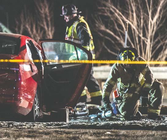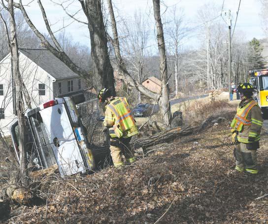 At 1410 on March 7, 2023, Haddam (CT) VolunteerFire Company responded to an MVAon CedarLake Road. Adriver had crashed and rolled a vehicle into a wooded area. The driver was transported to Middlesex Hospital. Adog, who was in the vehicle at the time of the accident, was evaluated on scene and appeared to have no injuries. The dog stayed in the care of firefighters until he was reunited with anotherfamily member.