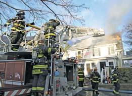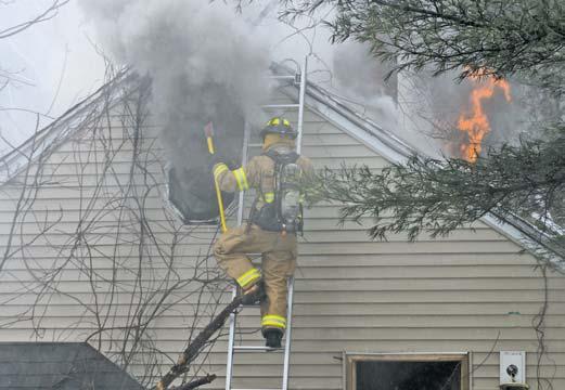 Folsom went to defensive operations and pulled all firefighters out and called a third alarm foradditional apparatus and personnel. The heavy fire was knocked down within an hour, but firefighters worked forseveral hours on overhaul. The house appeared to be a total loss, and the second floorappeared to be structurally unstable. Houses on both sides of the burning house had siding that was damaged. - Fire News photos by Jeffrey Hastings and Patrick Kerrigan
