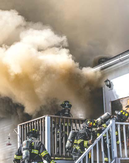 Bedford (NH) Fire Ambulance spotted a large plume of smoke coming from the area of Tumble Road. Emergency crews arrived to the entire right side of the house involved in heavy fire. Asecond alarm was immediately requested as crews stretched hose lines to keep the fire from spreading. The intense fire, combined with gusty winds, spread flames quickly throughout the attic, and interiorof the twostory house. Due to the intensity of the fire, Deputy Chief Keith