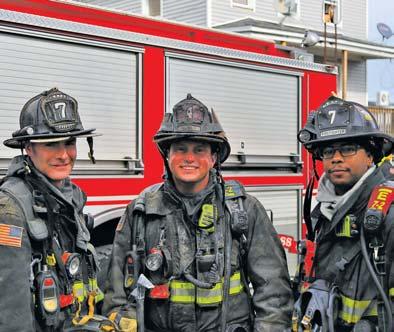 Members of Haddam (CT) VolunteerFire Company recently participated in a search and rescue drill inside HVFC’s training building. In simulated smoked-out conditions, crews worked in small teams to locate two trapped victims (mannequins) and remove them from the structure. “This drill taught ourmembers not only about how to sweep, search, and check forstructural vulnerabilities, but how to effectively communicate with one anotherand work quickly,” said Captain Kyle Everett. In addition, crews practiced treating patients with smoke inhalation and/orburns. The drill also allowed seniormembers to teach JuniorDivision Members how to properly gearup fora structure fire and use SCBA(self-contained breathing apparatus). Pictured ; Firefighter Richard Zanelli helps JuniorDivision MemberMax Selmer.