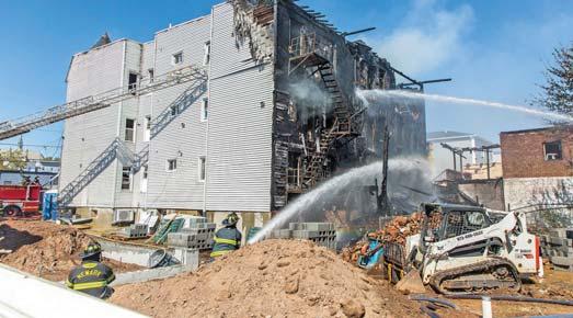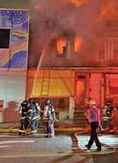 feet away started to burn and arc, hampering firefighting operations until they could be de-energized. One firefighter was transported to hospital for a knee injury, and two police officers and several residents were treated for smoke inhalation. The body of the deceased, an 18-year-old male, was recovered from the ruins several hours after the fire was finally declared under control at 0057 hours. Over 20 people were left homeless by the fire, the cause of which remained under investigation. - Fire News photos by Michael Ratcliffe