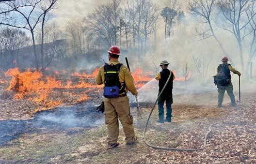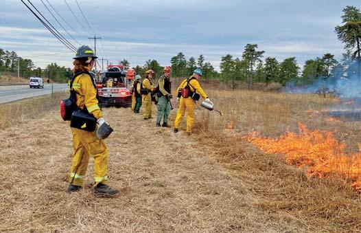 burn crew. The APBP burn crew is run by Tyler Briggs, whose exceptional knowledge and leadership as burn boss are unmatched. The APBP implements prescribed burns as part of its Management Plan to restore and conserve its globally rare and unique inland Pine Barrens ecosystem. The APBP’s burn team aims to burn 10 percent of the preserve each year to sustain a healthy ecosystem and maintain the integrity of the preserve. This can be a tall order, as there are typically only 20 days a year that meet the weather specifications for a prescribed burn.