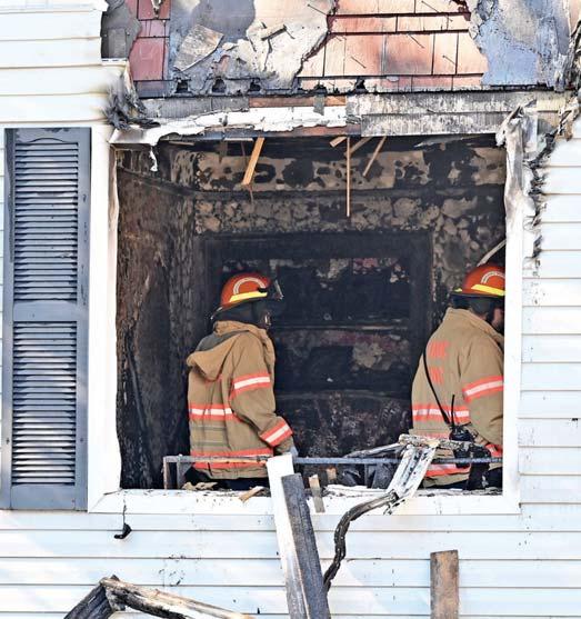burning out of control the chief ordered all firefighters out of the structure and went to a defensive attack. Truck 7 was positioned in the front of the structure and doused the fire while there was a line on the 2 and 4 sides keeping those houses wet so the fire didn’t spread. - Fire News photos by Jim Lepard Digital Imaging