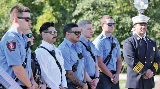 At 1830, the first responders from the tricounty region and beyond were led in formation into the ceremony by a piper from Gates