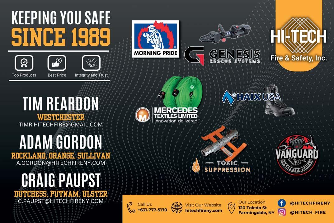 Craig will focus on expanding Hi-Tech Fire & Safety’s relationships with fire departments and emergency service organizations throughout New York State, partnering with Hi-Tech’s Tim Reardon and Adam Gordon in the Hudson Valley area to offer personalized support, product demonstrations, and training.