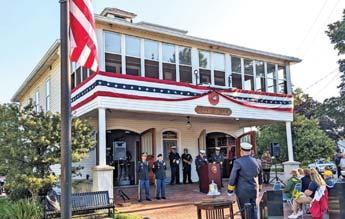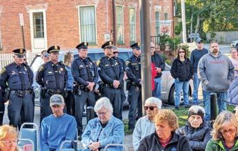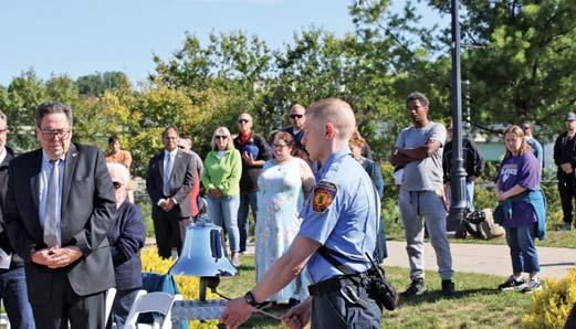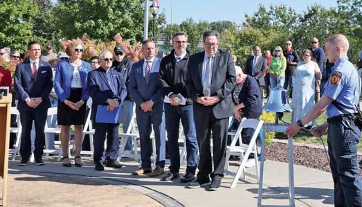follow. The district flag was replaced with the black and red memorial flag and lowered to half-staff. Candles were placed on the monument. The bell was placed at the entry to the engraved walkway and the sound system was set up for the ceremonies to follow.