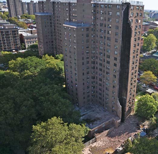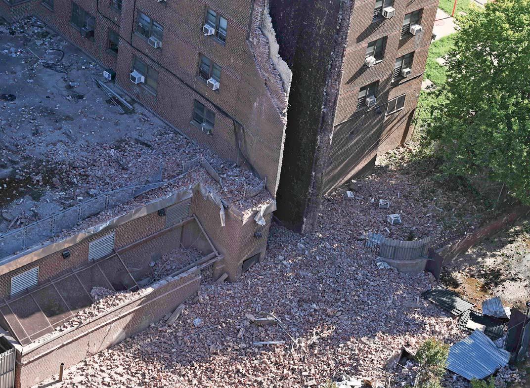 Firefighters responded for an explosion and collapse of boiler ventilation shaft at a Bronx housing project on Alexander Avenue on October 1, 2025. It left a major debris field at the base of the collapse, but luckily no injuries were reported.