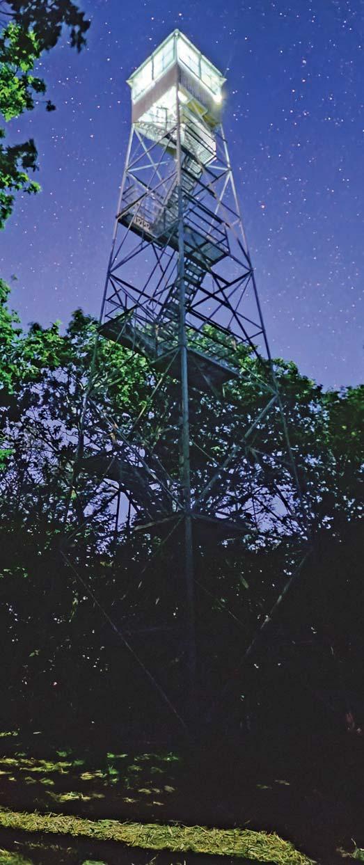The Lighting of the Fire Towers is a demonstration of communityled historic preservation. This initiative, spearheaded by the New York State Chapter of the Forest Fire Lookout Association, aims to maintain these towers not just as relics, but as functional educational and recre-