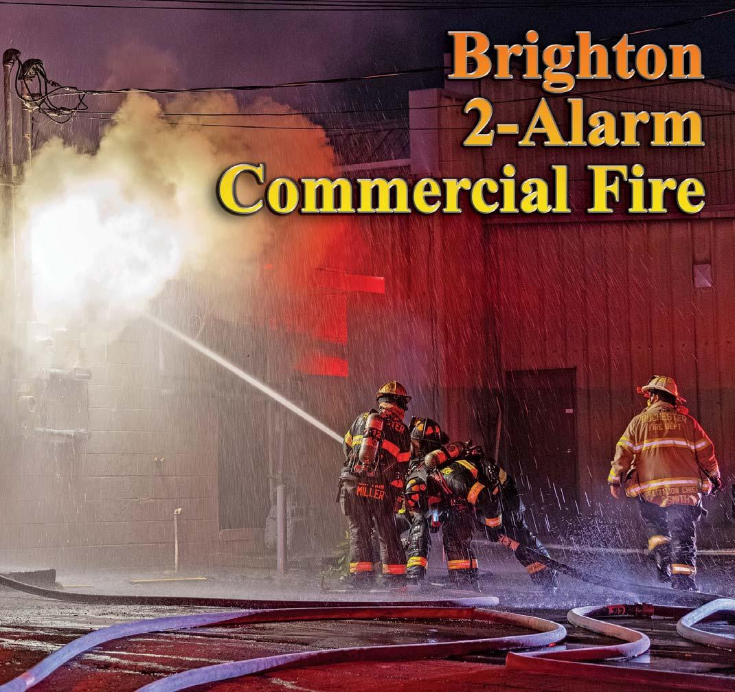 Around 2100 hours on September 9, 2025, Brighton firefighters were dispatched to Monroe Avenue for the report of a fire. On arrival, companies found smoke showing from numerous areas of a single-story brick commercial structure and declared a working fire. Firefighters made entry and worked to find the fire and quickly knock it down but the heavy fire load had extended into the cockloft and was running the building. Crews would continue to try to get a stop on the flames but were forced to an exterior operation as the flames and high heat started to compromise the structural integrity of the building. A second alarm was called bringing numerous departments to the scene to assist as multiple ladder pipes and large lines worked to knock down the fire and keep it to the building of origin. The fire was knocked down just before midnight. - Fire News photos by PuckStopperPhotography.com