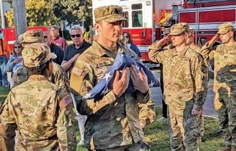 Members from SUNY Brockport’s ROTC Battalion were once again with us. They removed the worn American flag from the 30foot pole, folded it, triangular style and switched it out for a new one. This was raised to full staff and lowered back to half staff in accordance with Presidential Orders surrounding Patriot Day.