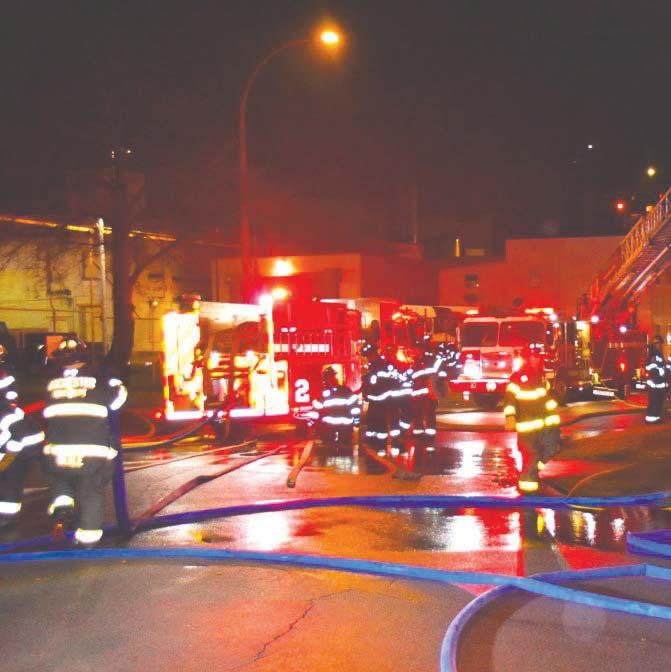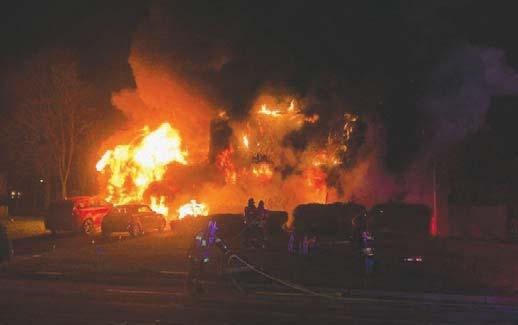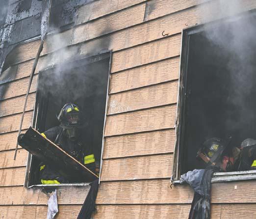 fighters, hurt and overa hundred residents displaced. Fire burned through the roof forhours as units used a towerladderand, seven hoselines and trench cuts to bring the fire undercontrol.
