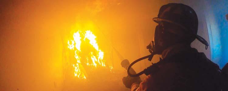 FirefighterTrent Lucas applies water to fire afteradvancing a fire hose down a hallway to the fire room. - Submitted by Trent Lucas