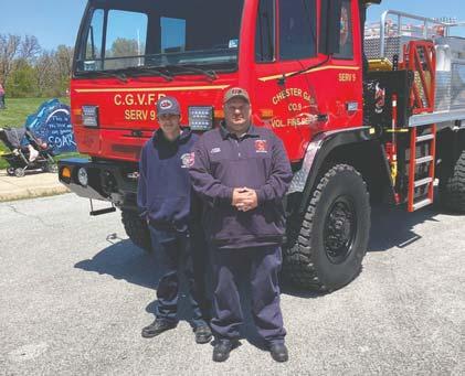 Up Close and Personal with JuniorFirefighterDennis Grigsby and Captain Chris Eamich of the ChesterGap Fire Company at the 95th Annual Apple Blossom Festival apparatus musteron April 29, 2022, in Winchester. - Fire News photo by Dennis C. Sharpe