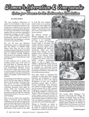 This includes Delcy Rodriguez, Vice President of Venezuela, Asia Villegas, the Minister of Popular Power for Women and Gender Equality, Aloha Núñez the Minister of Popular Power for Indigenous Peoples, Blanca Eekhout, the Minister of Popular Power for Communes and Social Movements, and Tibisay Lucena Ramírez, Continued on page 6