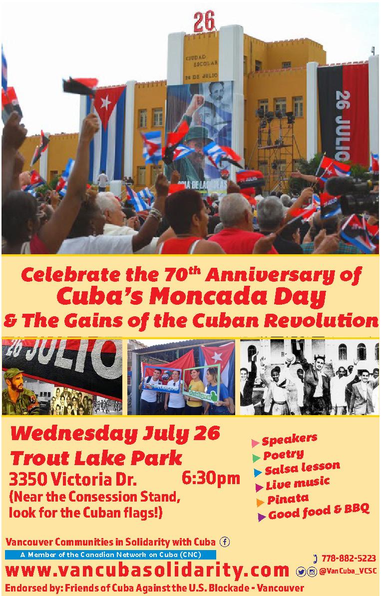 Join the next upcoming event in solidarity with Cuba! Vancouver Communities in Solidarity with Cuba is online at www.vancubasolidarity.com, and you can follow us on Facebook @ VanCubaSolidarity and Twitter and Instagram @vancuba_vcsc. You can also visit Friends of Cuba Against the U.S. Blockade at www.vancubavsblockade. org and follow on Twitter and Facebook @NoBloqueoVan.