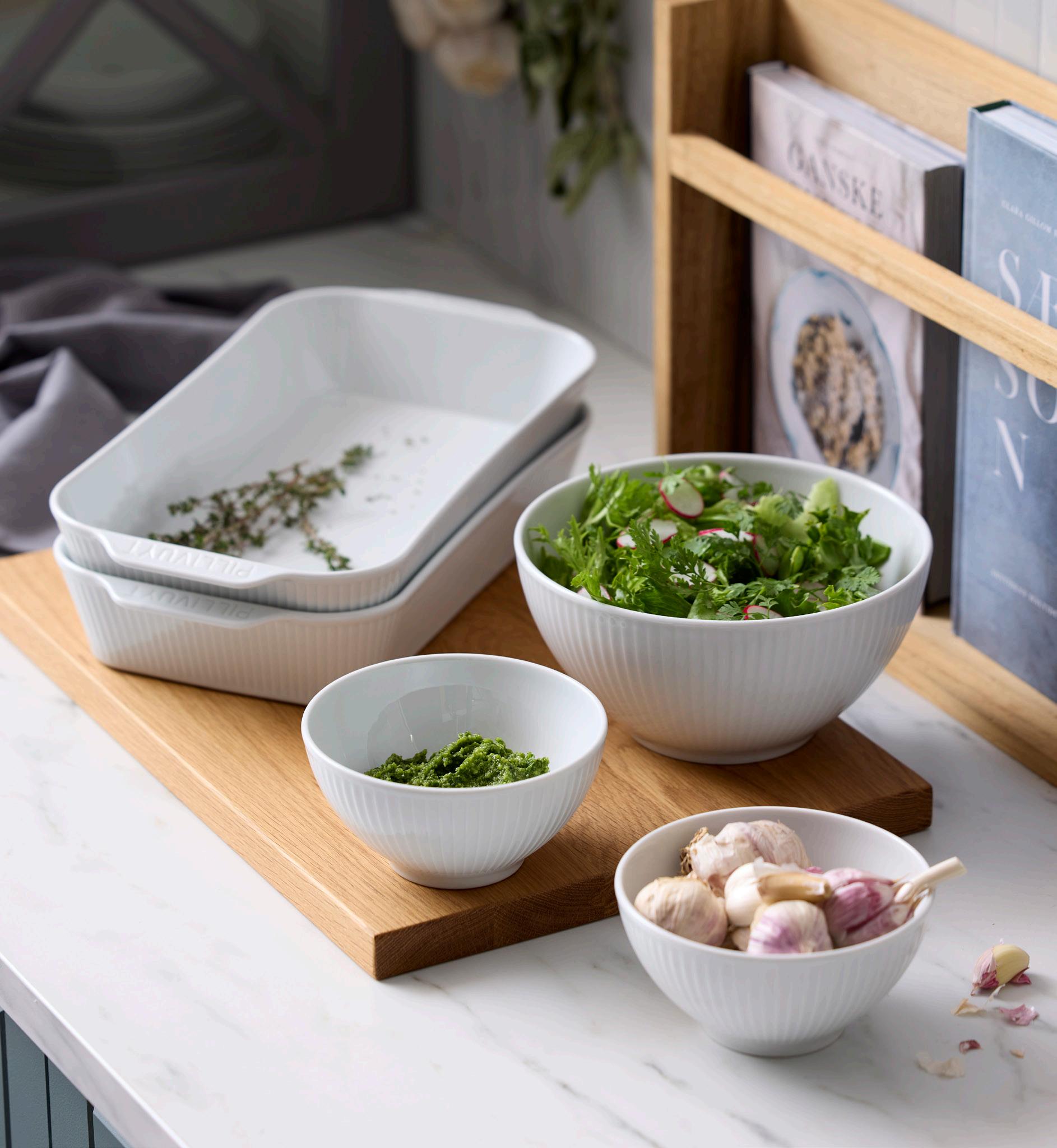 Pillivuyts fat og former presenterer maten på vakrest mulig måte og skaper en komplett kulinarisk opplevelse. Porselenet er ikke bare svært motstandsdyktig mot slag og støt, men tåler også termisk sjokk fra -30 °C til +350 °C – så du kan ta fatet rett fra fryseren og sette det direkte i en varm ovn.