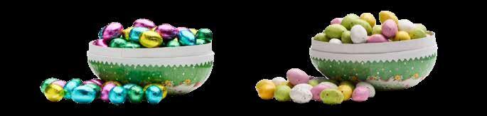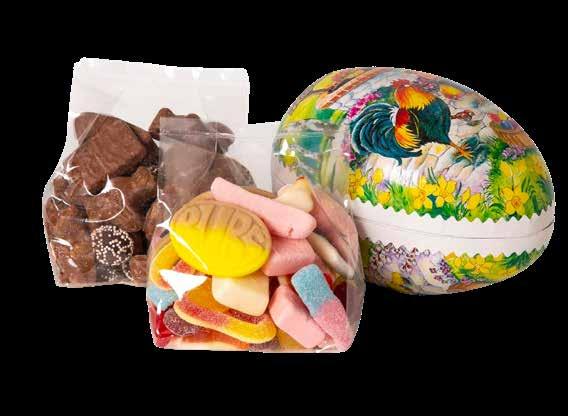 Velg blant Borgstena sjokolademiks (ren sjokolade), italienske praliner, nougategg, melkesjokoladeegg, påskeskum og påskemiks (smågodt og sjokolade).