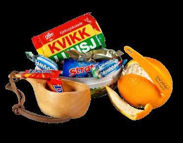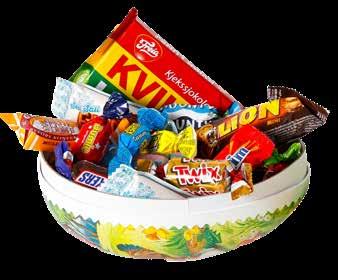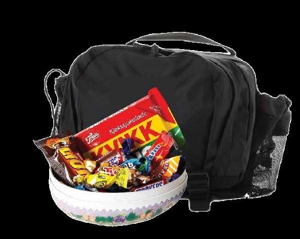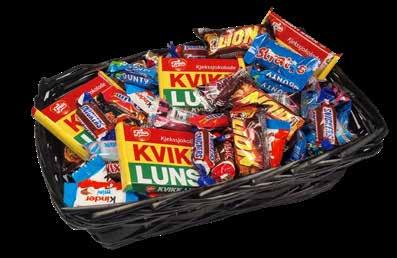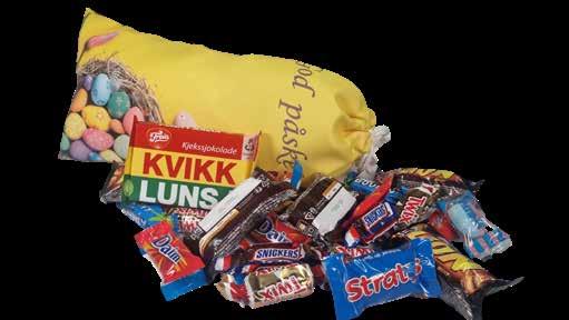 Fylt med 250 g assortert sjokolade av merkevarer samt en Kvikk Lunsj 47 g.