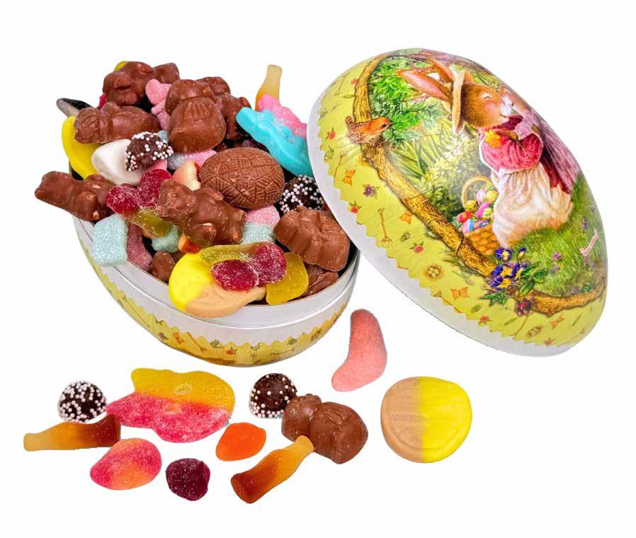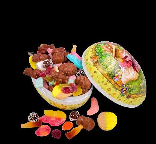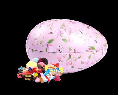 18 cm påskeegg fylt med: 450g smågodt og sjokolade