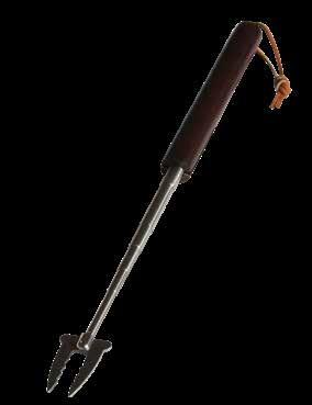 Smart teleskopisk pølsegaffel. Leveres med skinnrem.