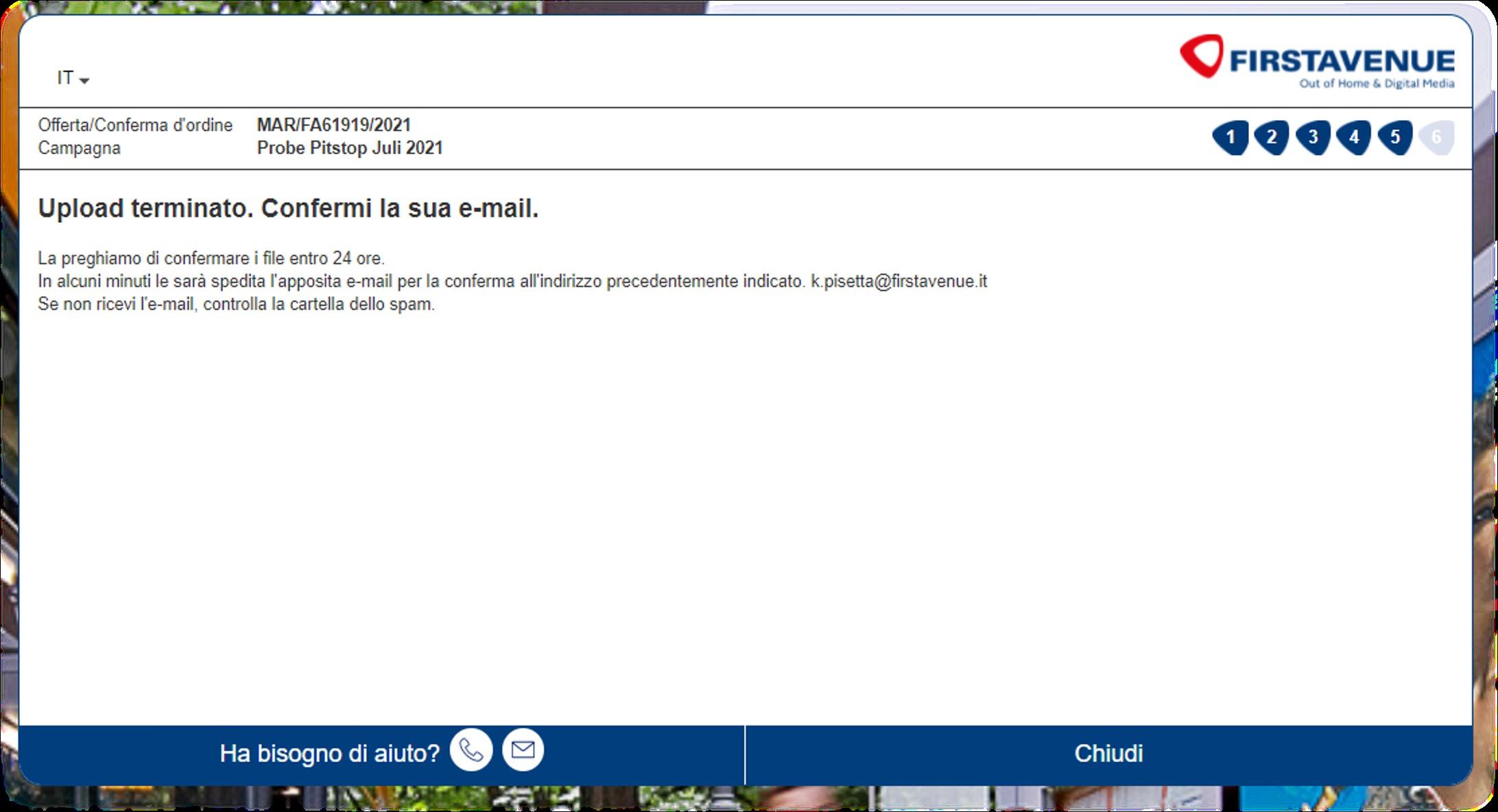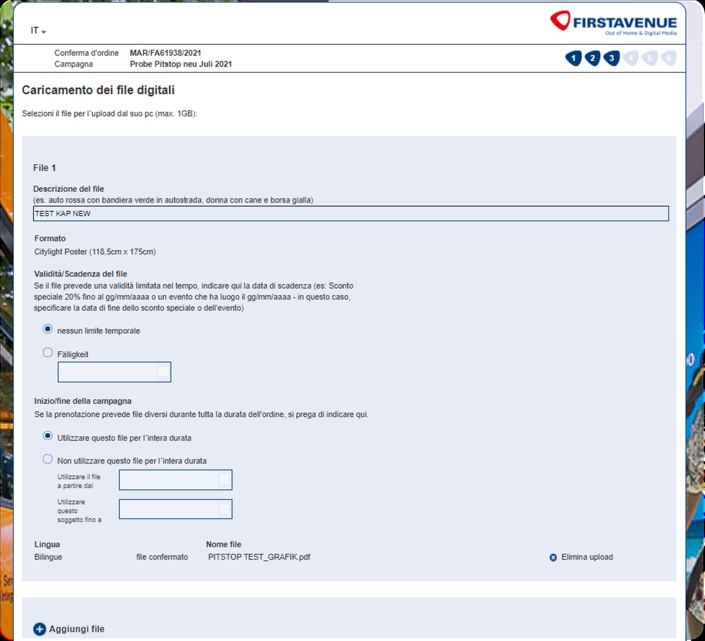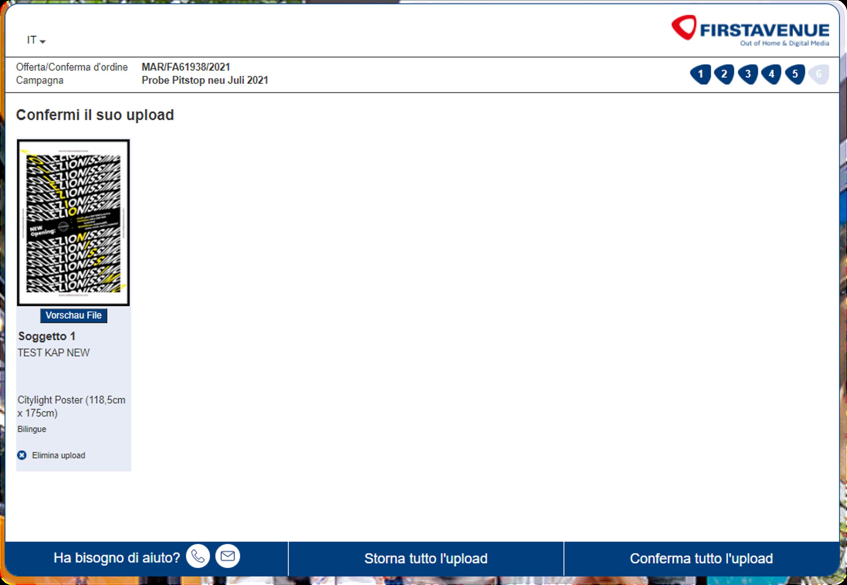 Nel caso volesse procedere con la conferma definitiva del file à clicca su „Conferma tutto l´upload“.