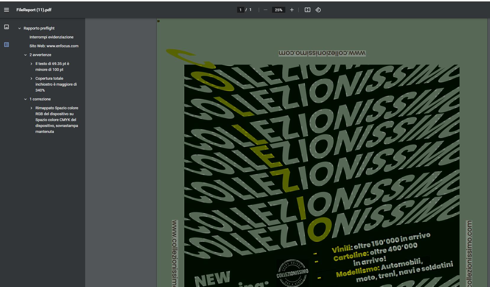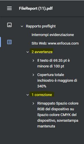 „ATTENZIONE“: Per visualizzare il rapporto cliccare sulla barra gialla. „Attenzione“ significa che il file é idoneo alla stampa nonostante - per una stampa qualitativamente ottimale - si consiglierebbero delle ottimizzazioni.
