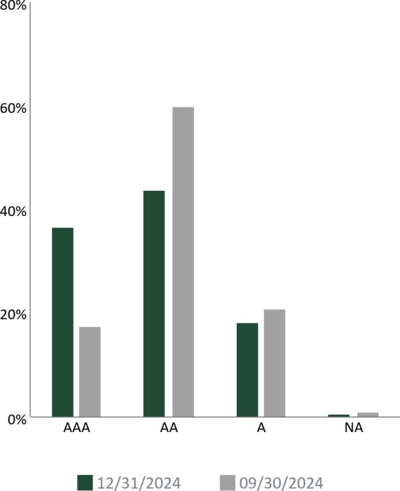 Security level ratings for U.S. Agency issued mortgage-backed securities (“MBS”) reflect the issuer rating because the securities themselves are not rated. The issuing U.S. Agency guarantees the full and timely payment of both principal and interest and carries a AA+/Aaa/AAA by S&P, Moody’s and Fitch respectively.