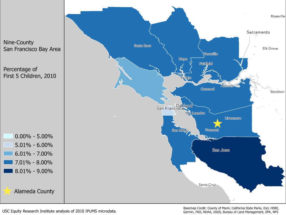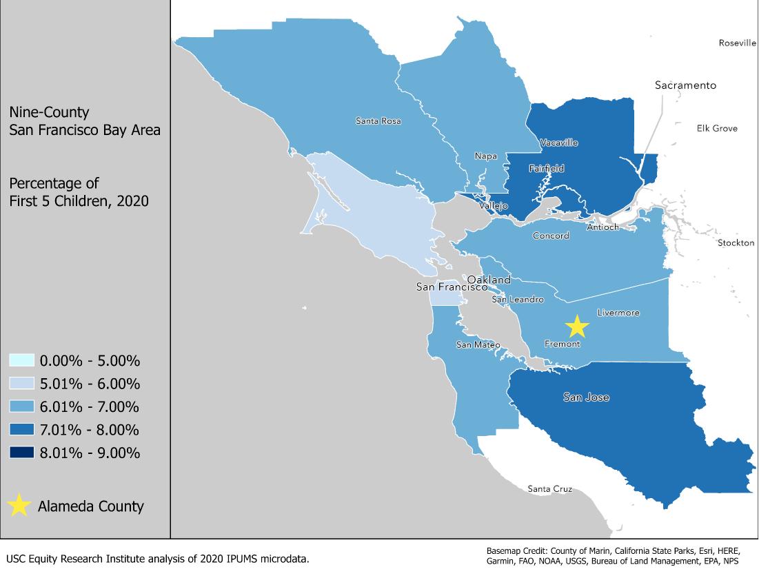 Percent First 5 Living Below 200% of the Poverty Line by Race/Ethnicity, Alameda County, CA, 2017-2021