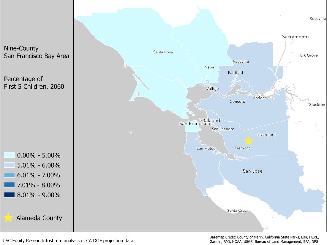 Share of Children (age 0-5) in Each Region of California, 2010-2060