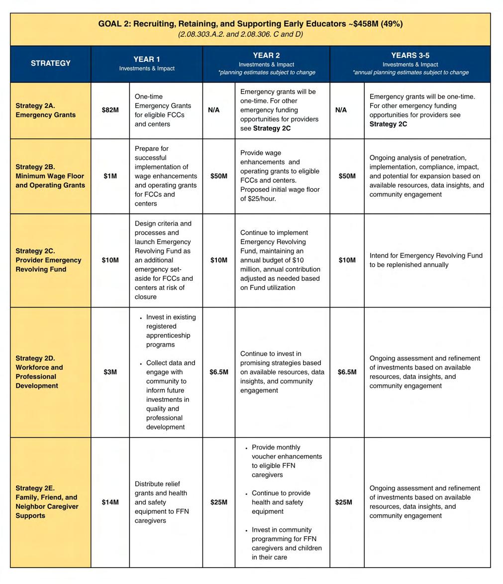 • In fiscal year 2023-2024, we released a Request for Proposals (RFP) to secure a contractor for the Early Childhood Facilities Fund and Technical Assistance Request program. The primary goals of this funding will include supporting children's kindergarten readiness, asset building, developing more stable, high-quality facilities for the early childhood field, and leveraging other funding streams for facilities where possible. The contractor, Low Income Investment Fund, will support the development of recommendations for the Early Childhood Facilities Fund Program with accompanying policy recommendations, dissemination of capital, and technical assistance to providers.