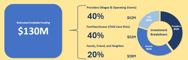 o A Child Care, Preschool, and Early Education Account (80%), administered by First 5