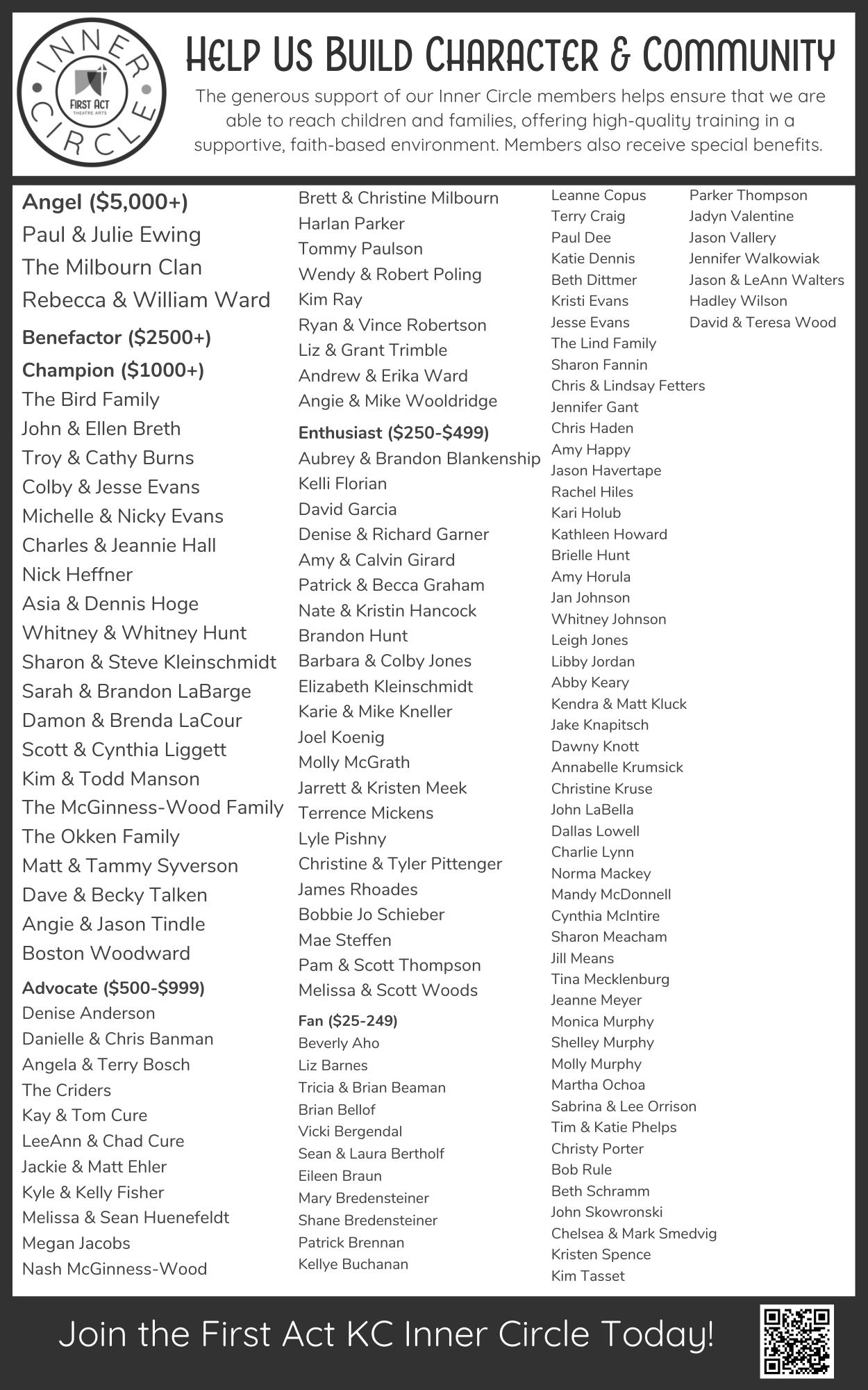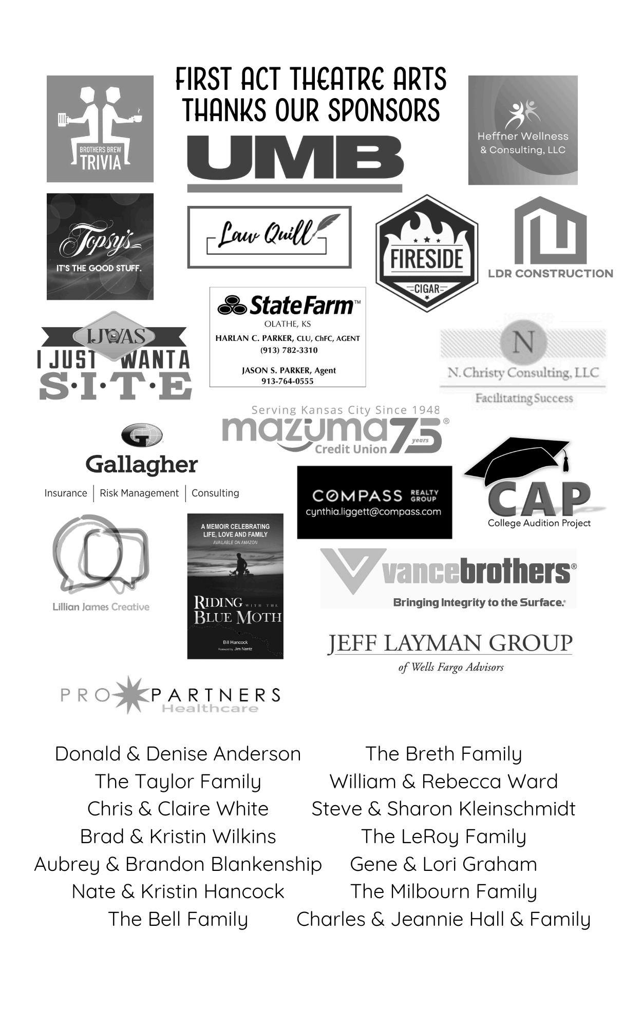First Act Theatre Arts would like to extend special thanks to the following organizations and individuals for their generous contributions to this show.