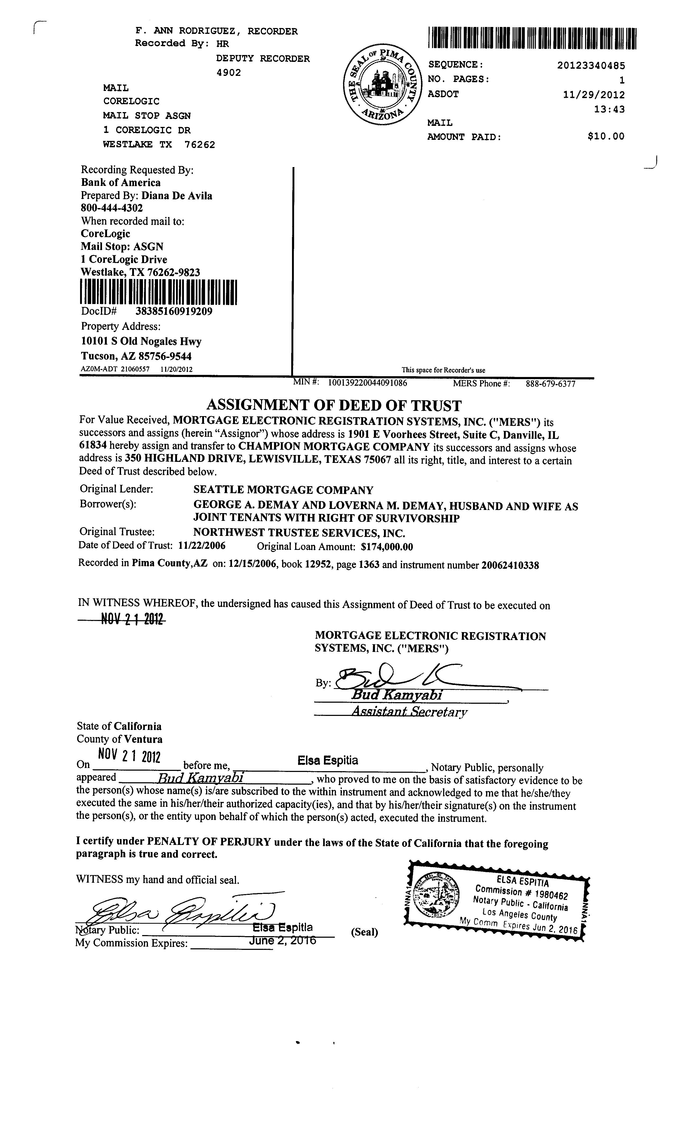 Bank Of America, National Association 1601 W Valencia Rd Tucson Az (520) 295-5105 5.29