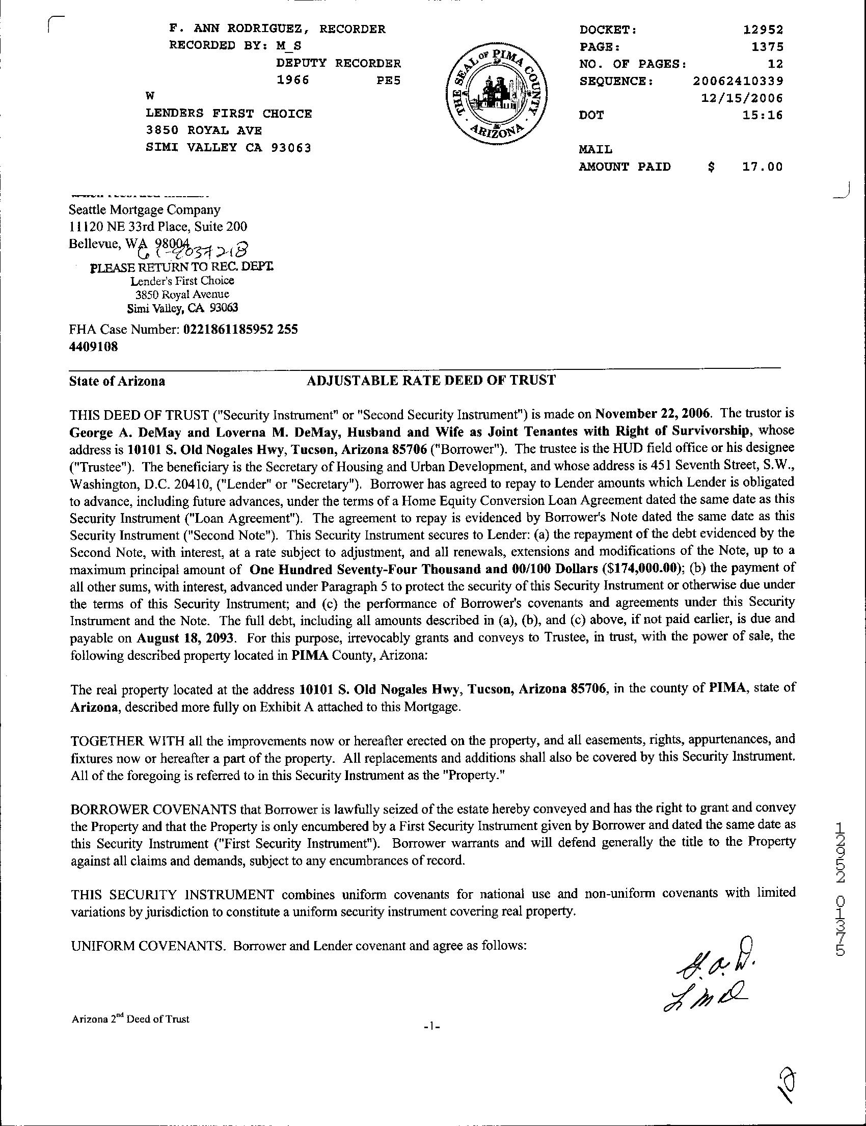 INSTRUMENT REC DATE