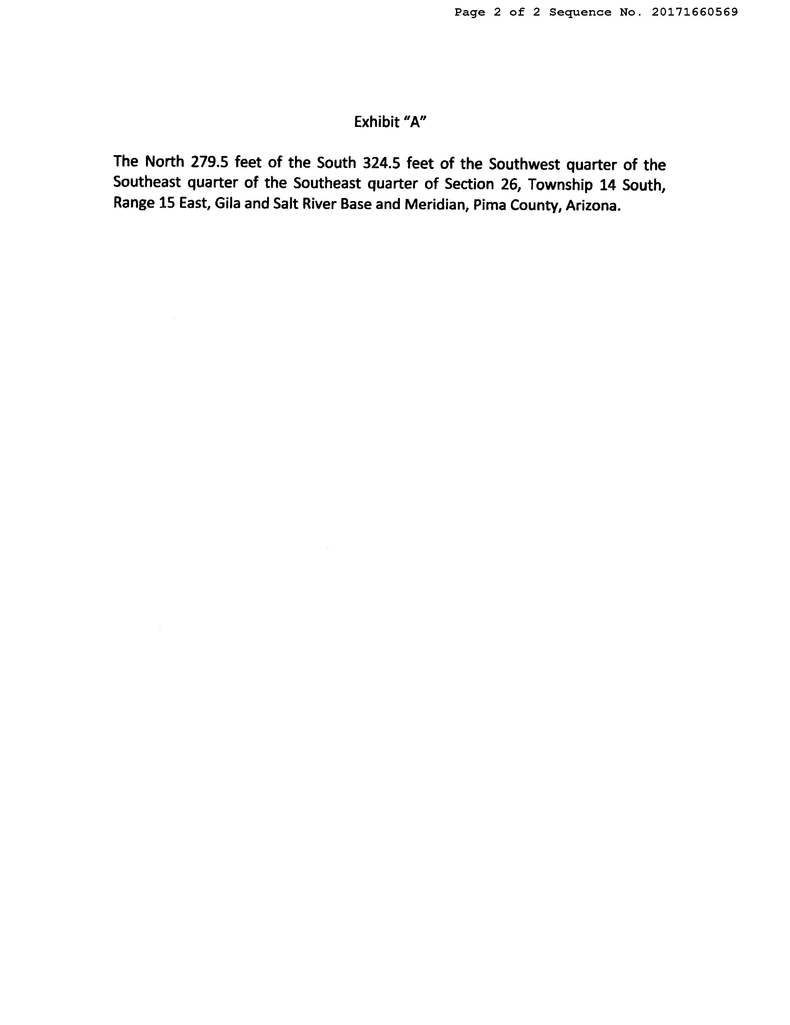 OWNER: DESERT OASIS LAND COMPANY L AFFIDAVIT 12981 414 01/30/2007 SITUS: 10201 E ESCALANTE RD TU MAIL: 4945 N AVENIDA DE SUZENU TUCSON, AZ 85749 LEGAL: N279.5' S324.5' SW4 SE4 SE4 3.76 AC SEC 26-14-15 CURRENT TAXES INFORMATION THROUGH 11/25/2022 LAND IMPR EXEMPT RATE AREA SPECIAL DISTRICTS
