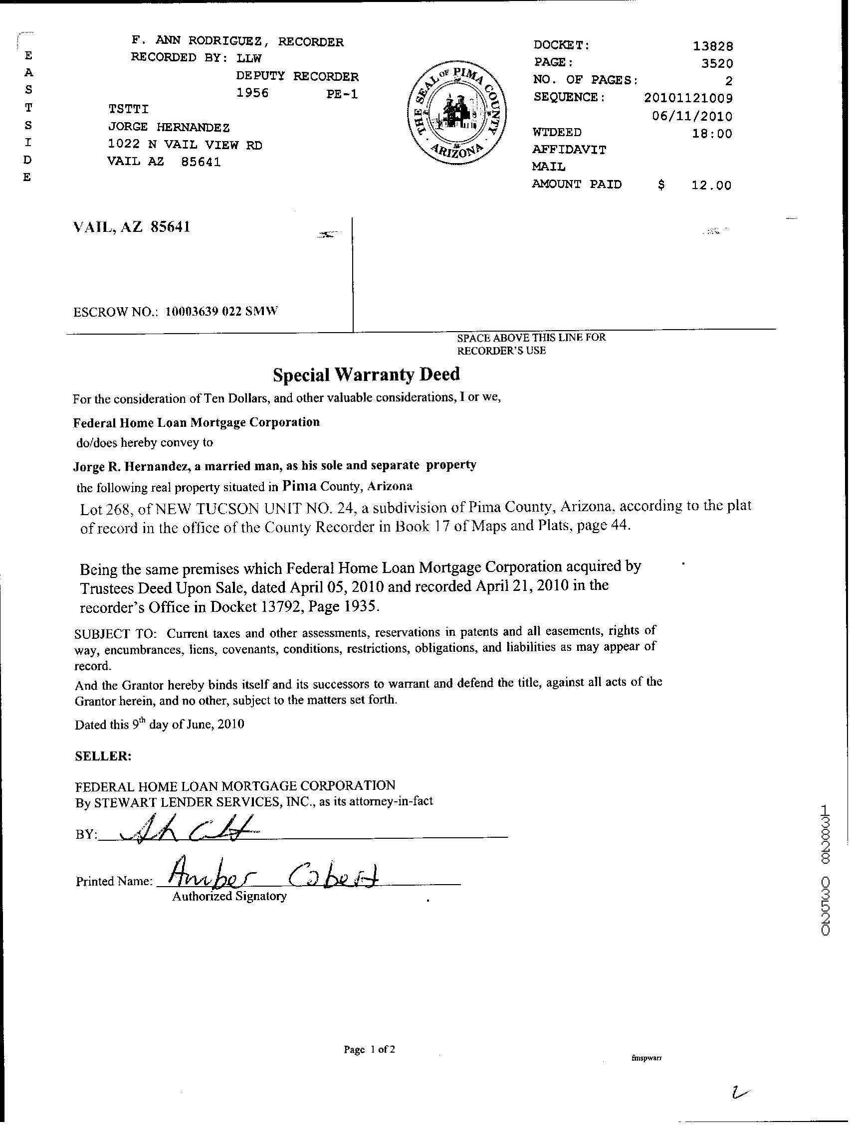 Owner Name: Hernandez Jorge R /Hernandez Amorette A