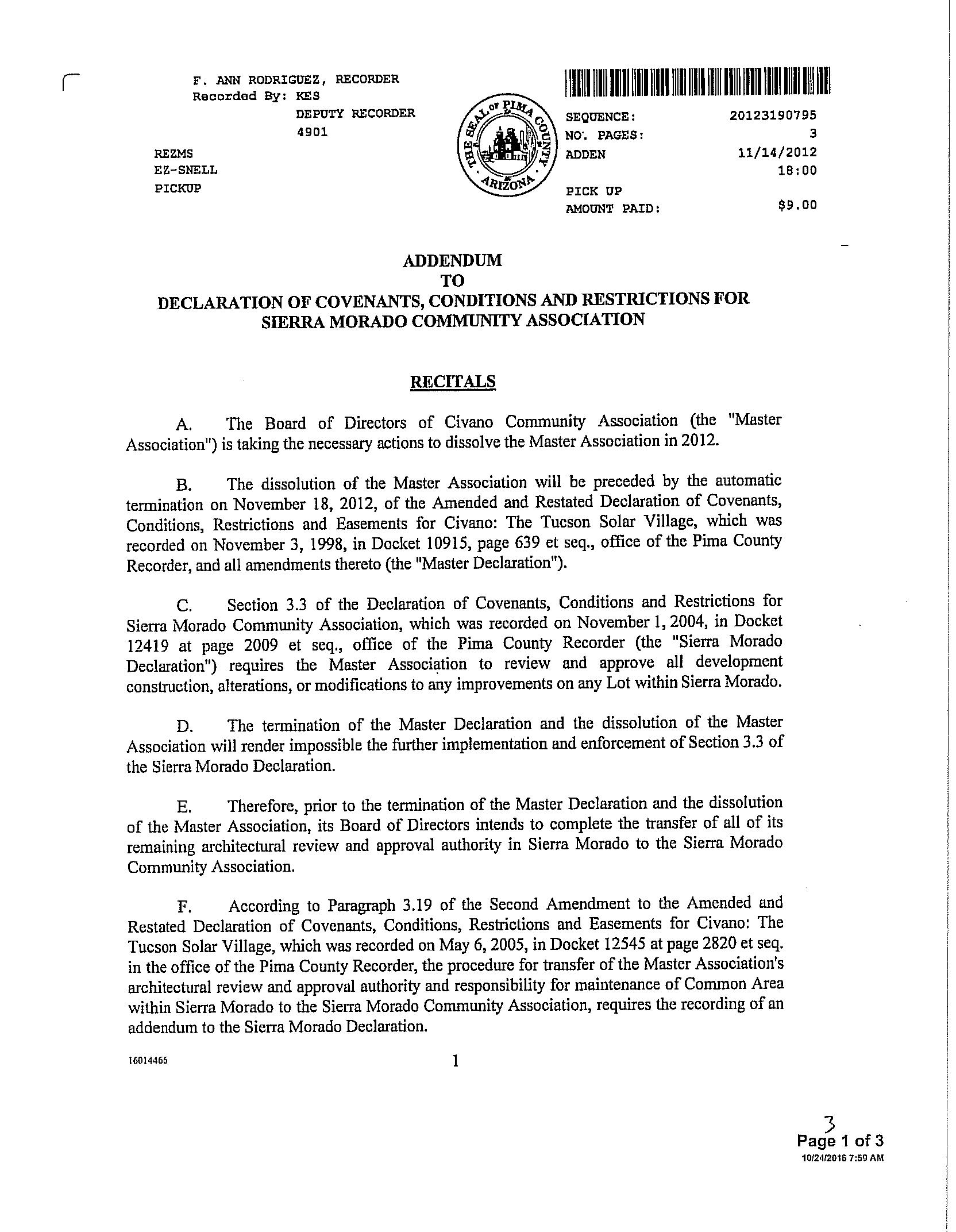Owner Name: Knott James /Knott Michelle APN / Alternate APN: 141-01-1520 / Deed Type: Warranty Deed Land Use: Sfr Subdivision / Tract: Civano 01 / Lot Size: 3,602 Year Built / Eff: 1999 / Rec. Date / Price: 10/17/2022 / $419,800 Living Area: 2,196 # of units: Document #: 2900554