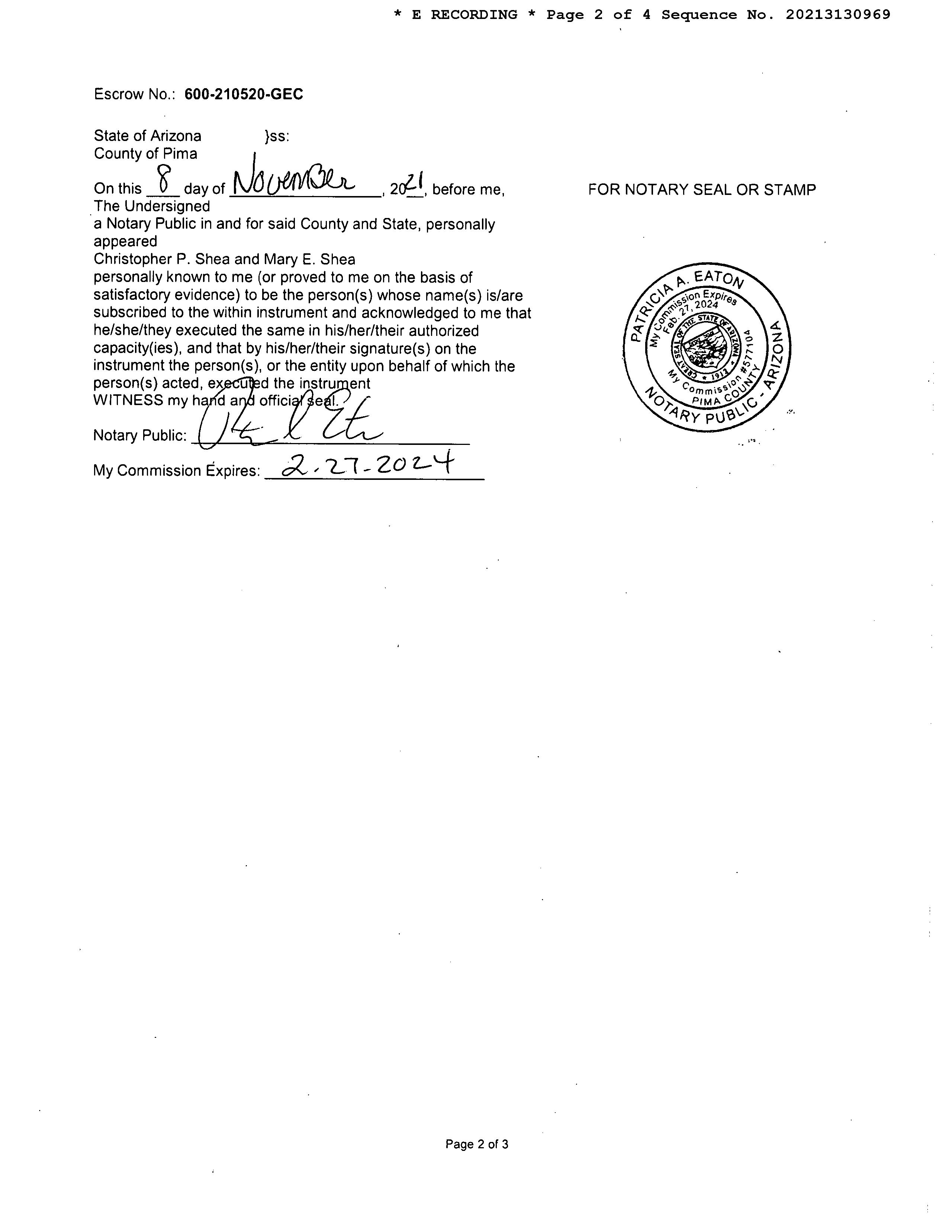 PIMA, AZ Document:DED WAR 2021.313.0969 Page:2 of 4 Printed on:8/12/2022 8:54 AM Branch :FC0 User :JSTI