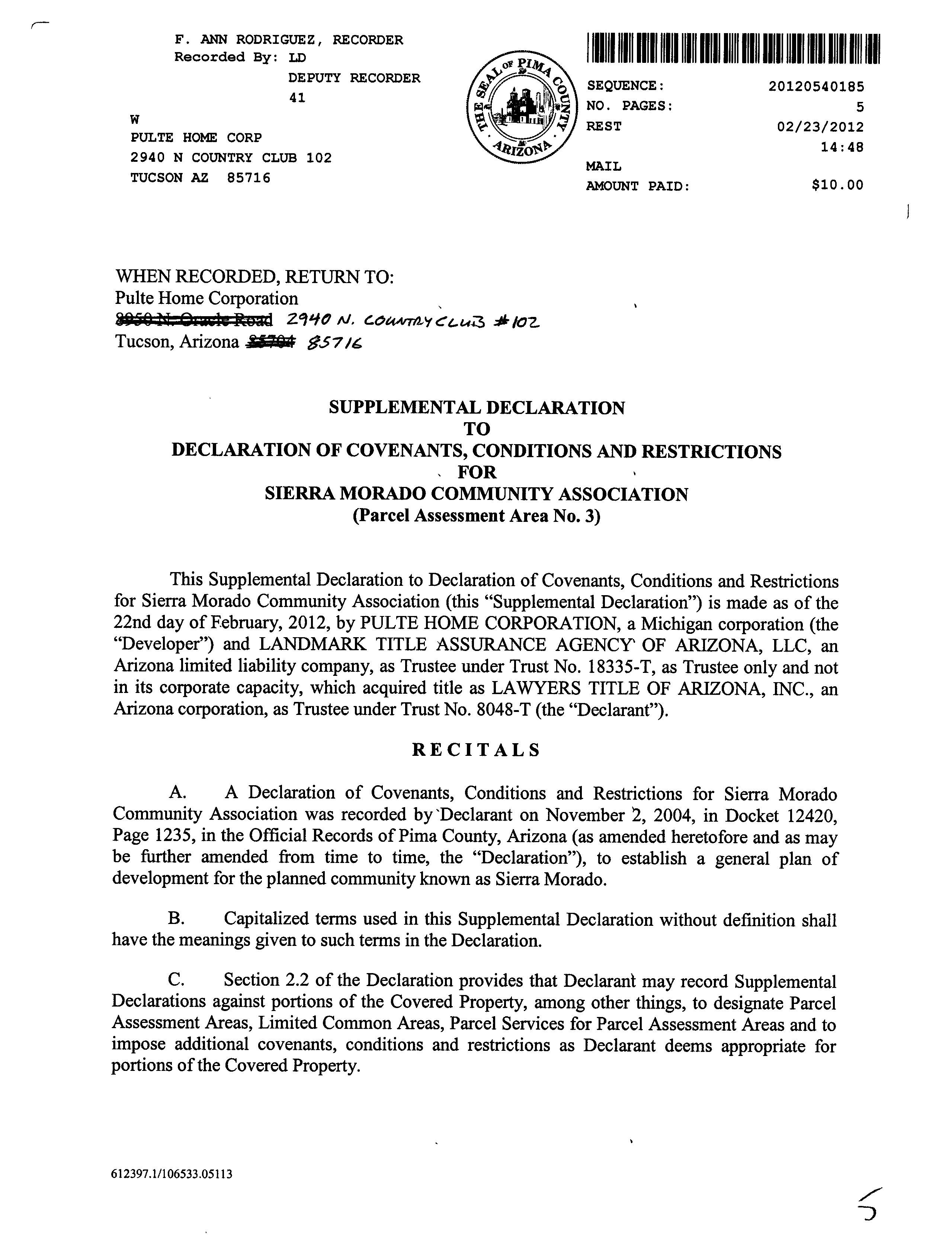 Owner Name : Dalessandro Anthony A Subdivision : Sierra Morado #4