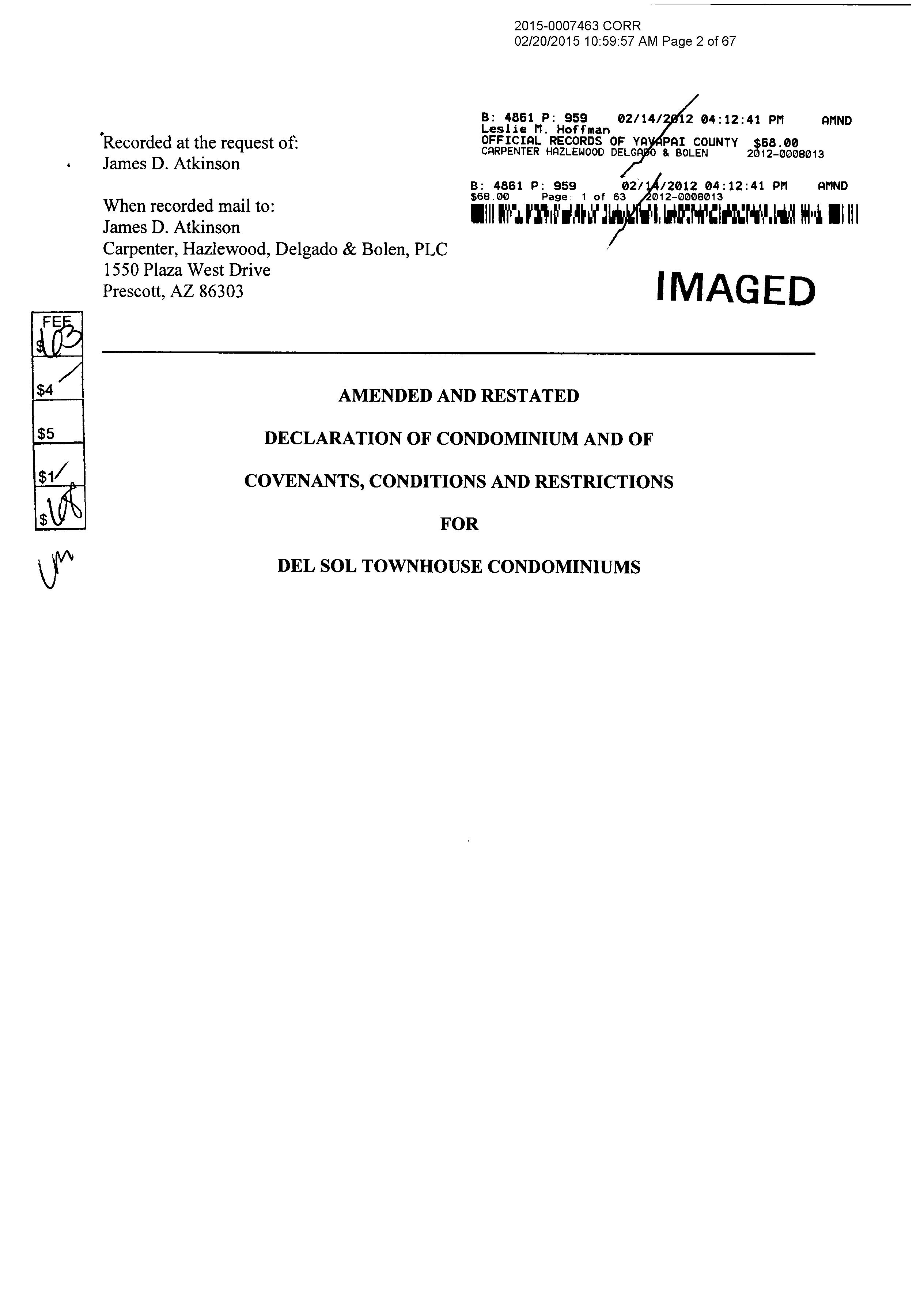 COVENANTS, CONDITIONS & RESTRICTIONS