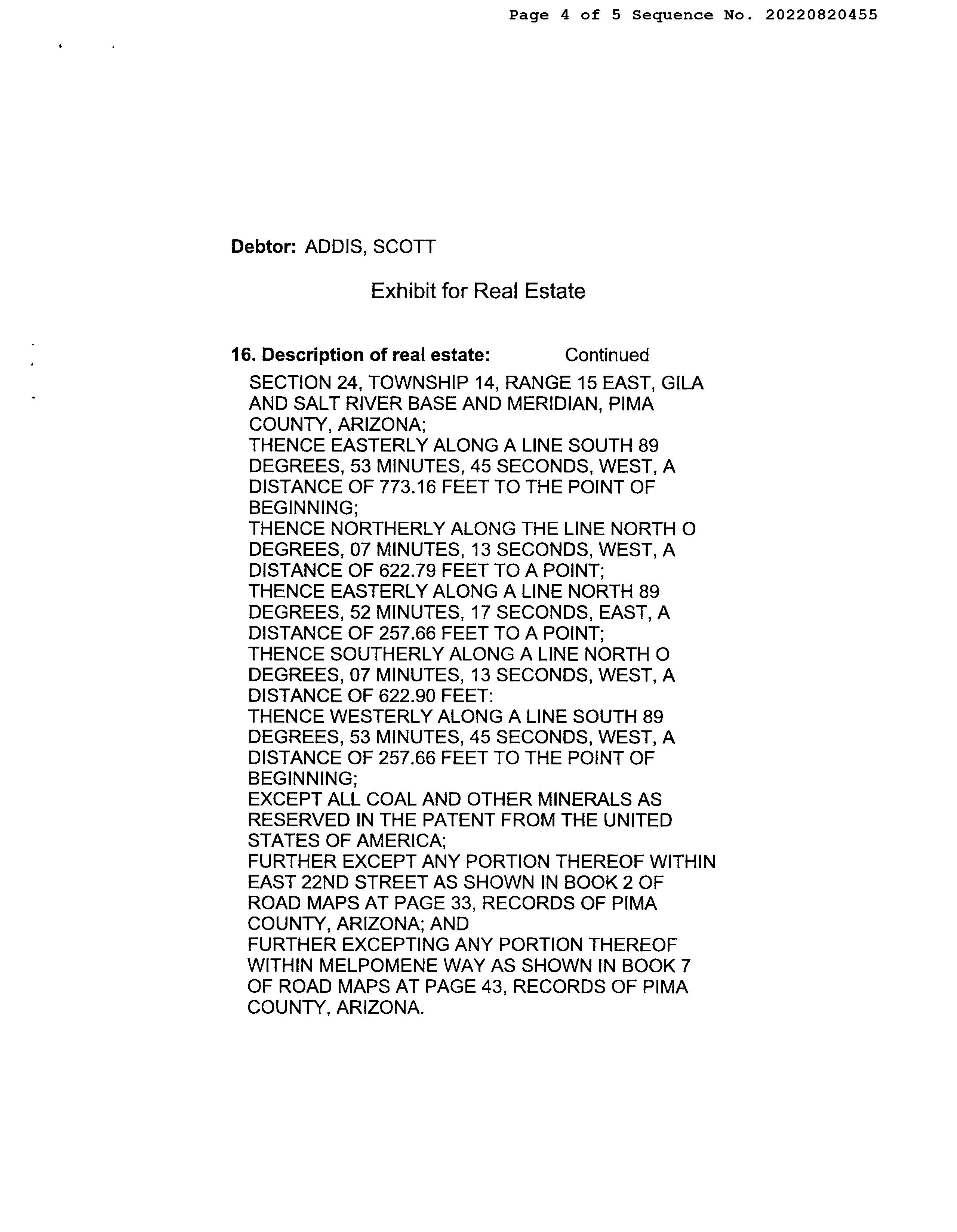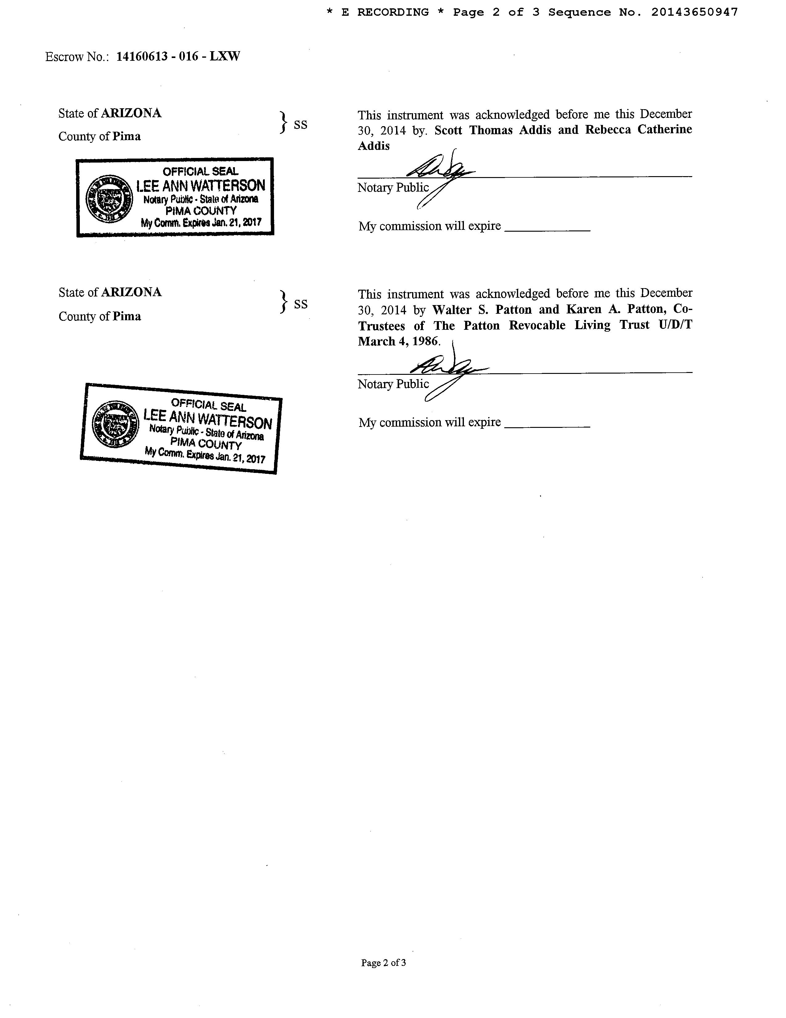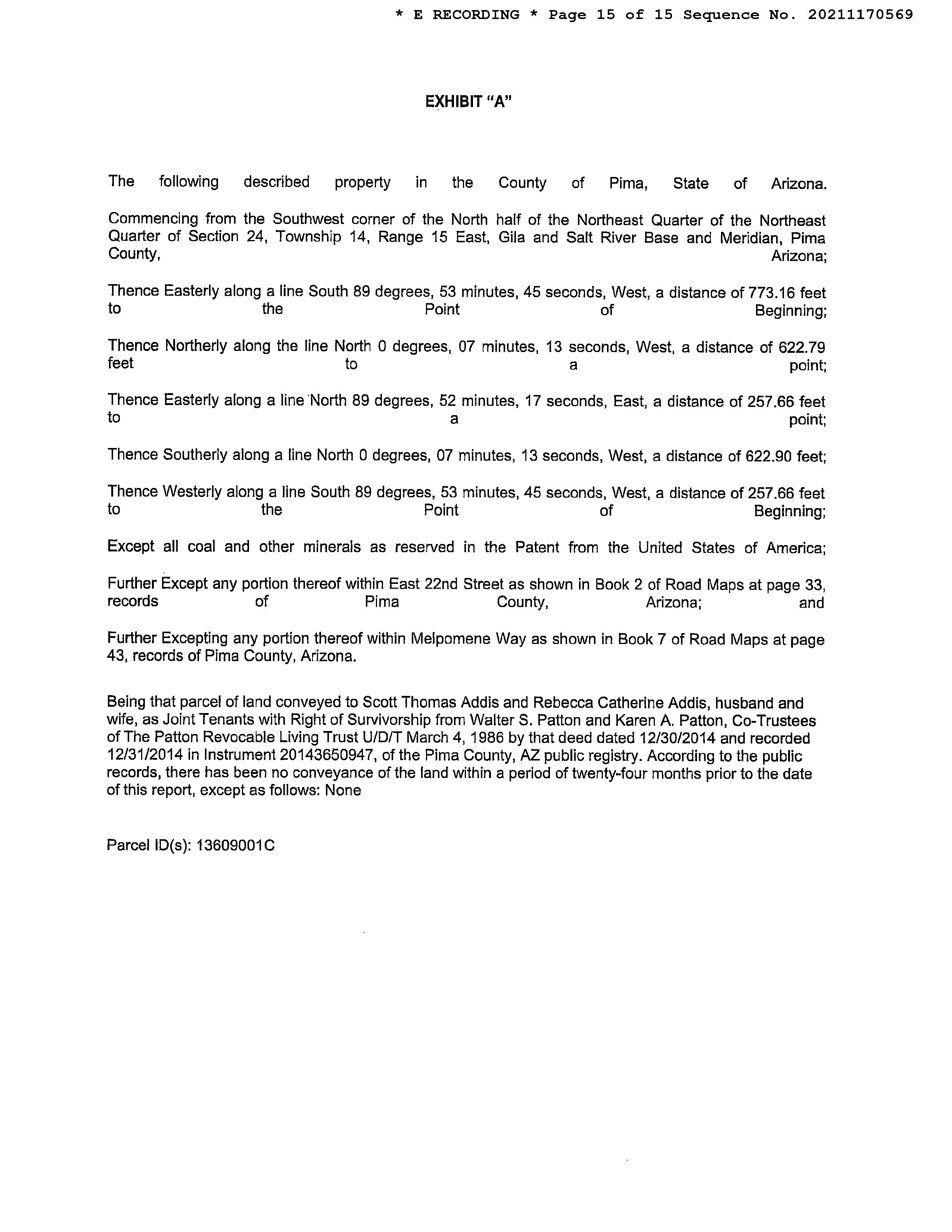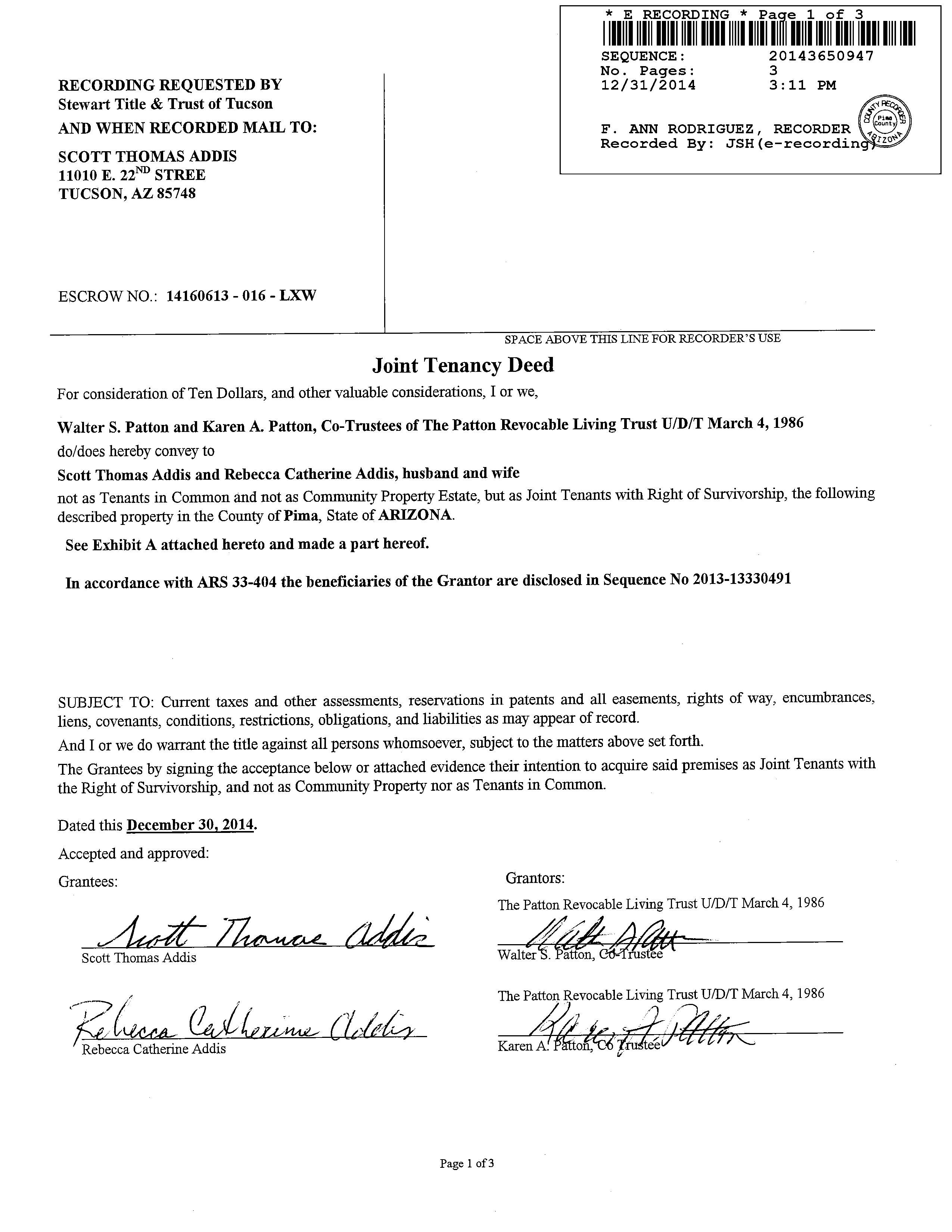 Owner Name : Addis Scott Thomas / Addis Rebecca Catherine Mailing Address : 11010 E 22nd St, Tucson AZ 85748-7023 C003