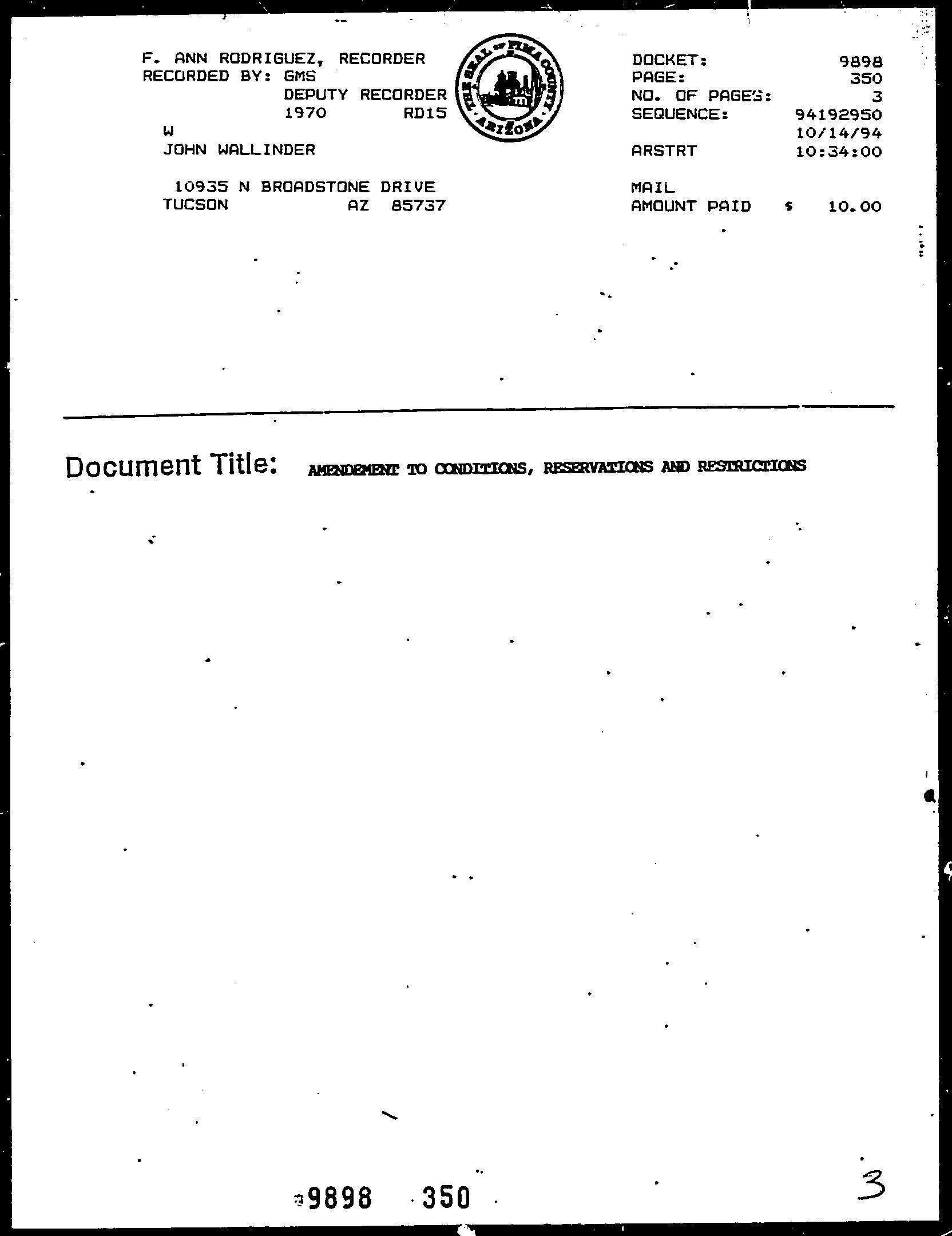 Mailing Address : 11105 N Broadstone Dr, Tucson AZ 85737-8923 R072