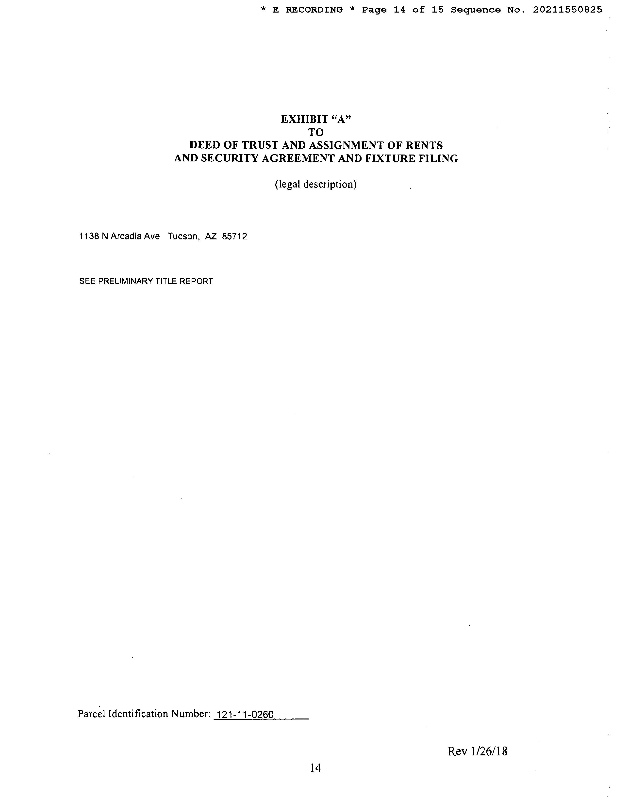 Subject Property : 1138 N Arcadia Ave Tucson AZ 85712