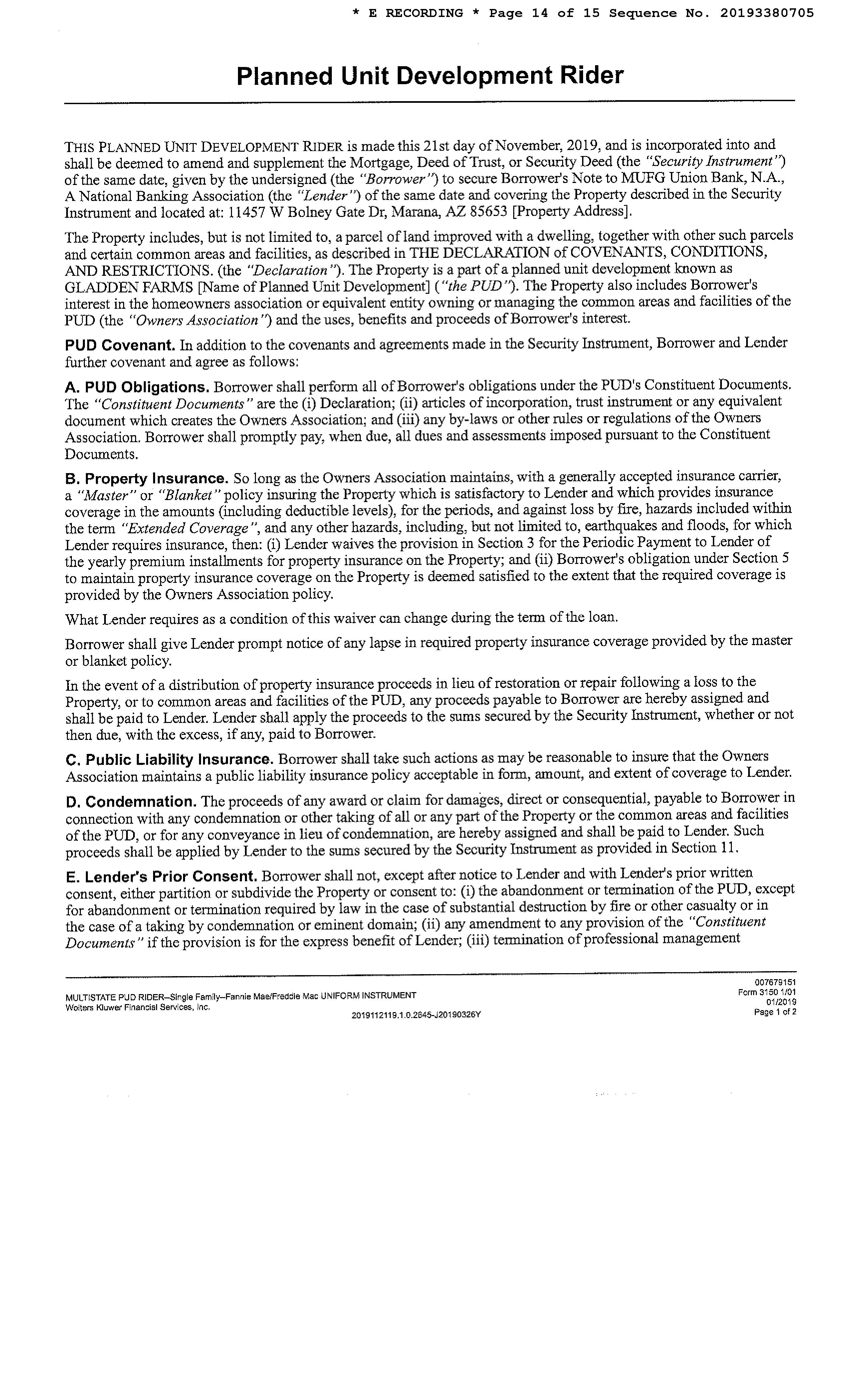 Mailing Address : 11457 W Bolney Gate Dr, Marana AZ 85653-7885 R004