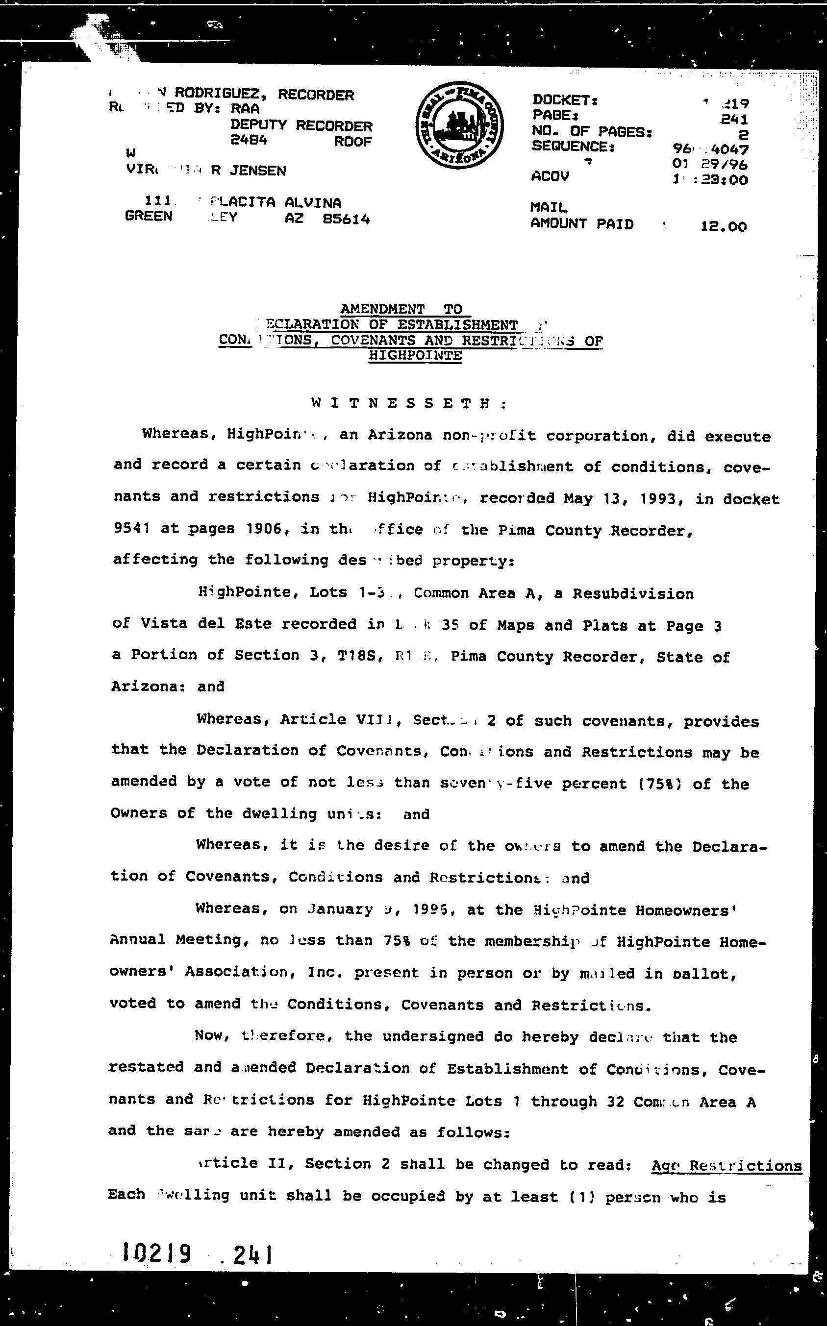 Mailing Address : 1151 W Placita Alvina, Green Valley AZ 85614-4046 C079