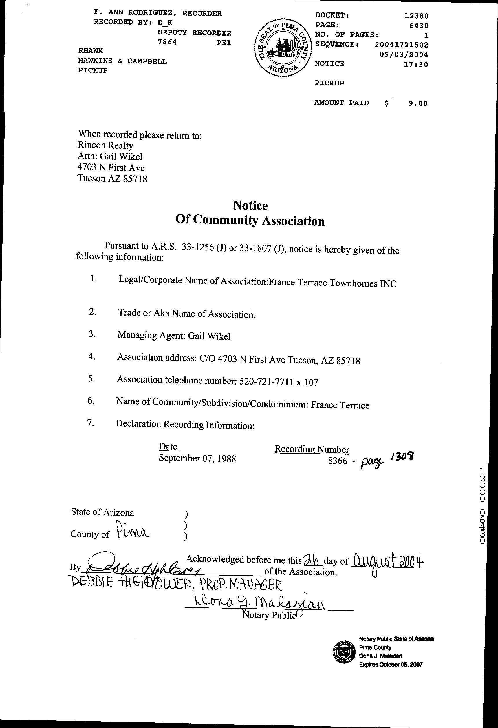 Owner Name : France Terrace Townhomes Assn